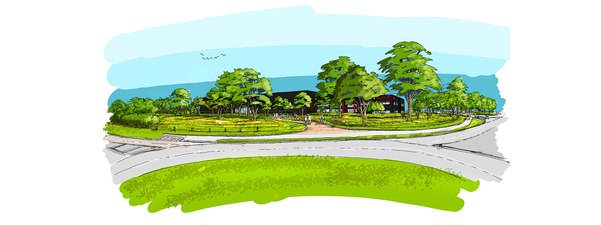 EDLA is leading on the landscape strategy for the external space on the project for their second factory – a new advanced manufacturing housing factory on the land north of Eshcol Road on the Hoo Peninsula. Our aim has been to create a space which effectively grounds the new manufacturing facility into the surrounding landscape, providing a valuable amenity location for employees and generating ecological benefits to support local biodiversity.